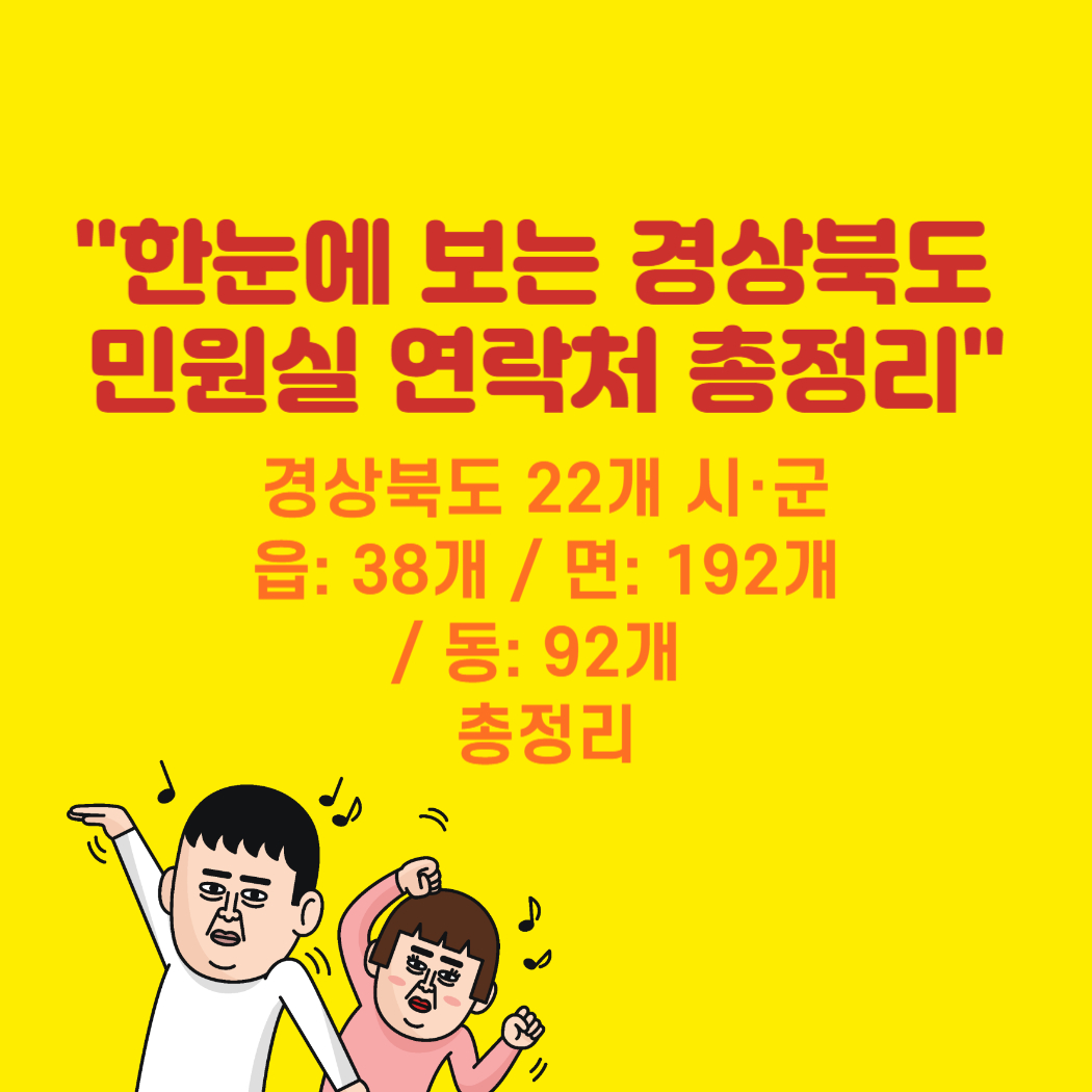 경상북도 산하 22개 시·군의 민원 정보를 한 곳에 모았어요. 각 시·군 **조직도(행정조직)**로 바로 이동해 읍·면·동 민원 연락처를 빠르게 찾을 수 있습니다.
