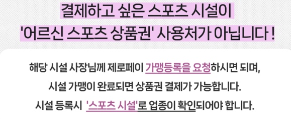제로페이 가맹점 중 스포츠 시설에서만 사용할 수 있어요. 구체적으로는 다음과 같은 곳들이에요: