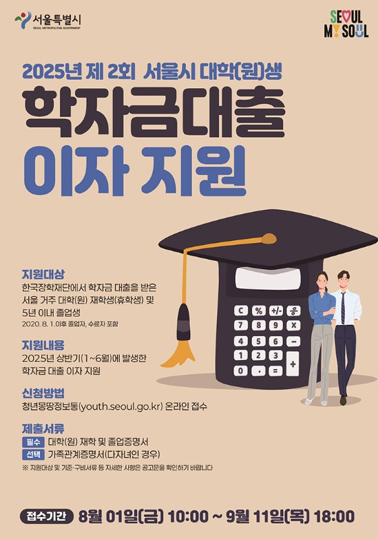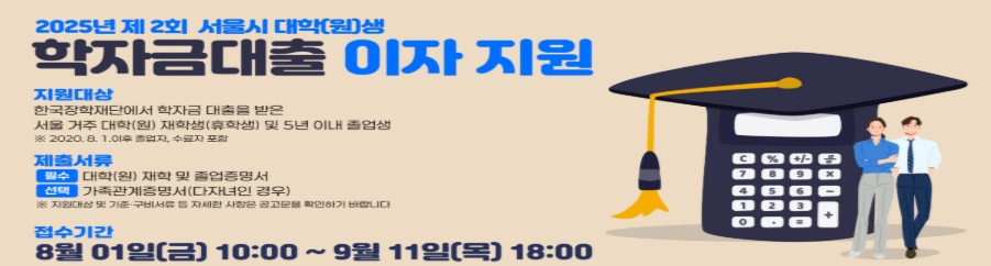 서울에 거주하는 대학생·대학원생들에게 희소식이에요! 서울시에서 한국장학재단 학자금대출 이자를 대신 내주는 지원사업이 진행 중이랍니다. 2025년 상반기 발생한 이자를 소득분위별로 최대 전액 지원해드려요.